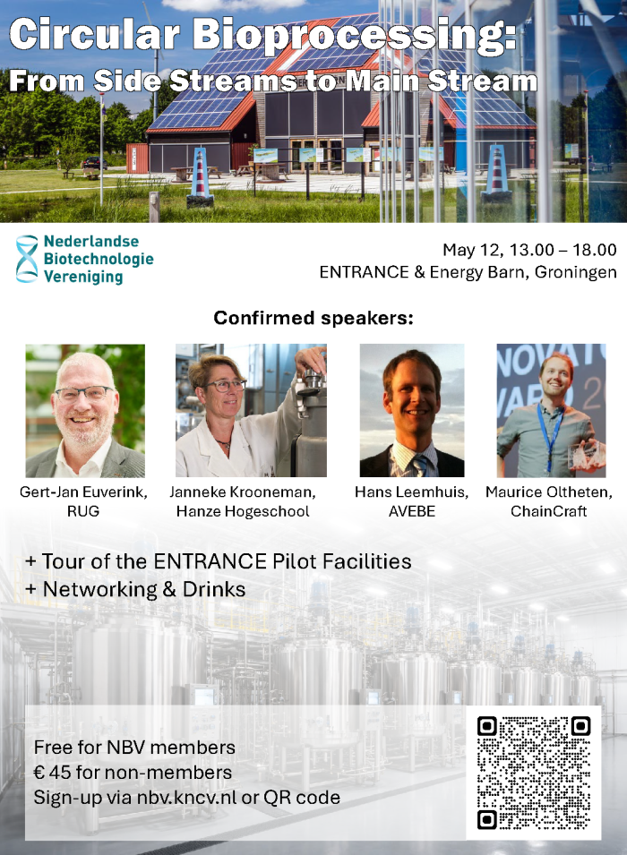 During this event professionals will discuss the latest advancements in Biotechnology. We continue with our ambition to highlight developments in different regions of the Netherlands with every edition, and also show you some state-of-the-art process facilities while we are at it. This year, we will host the event at the Entrance Facilities, a unique pilot facility where renewable energy and biobased economy research meet. We will hold a tour in the pilot facility, complemented by four exciting talks in the Energy Barn conference hall.