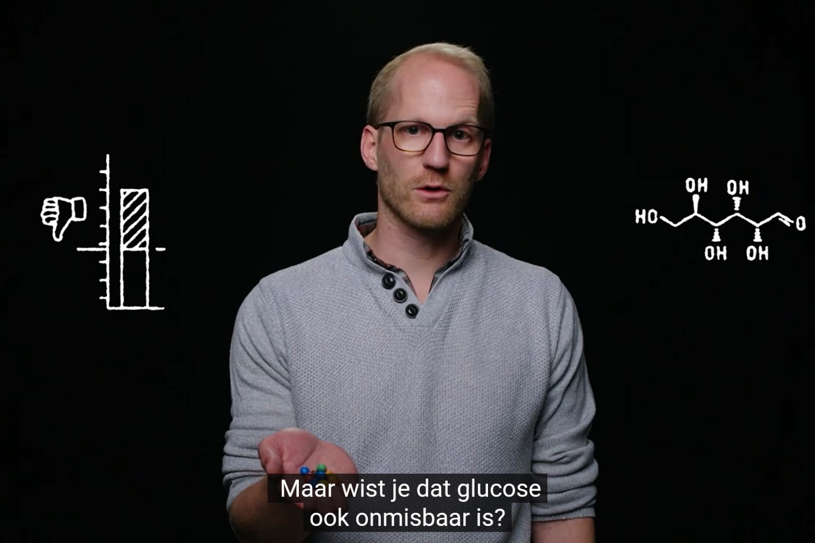 Suiker is niet altijd slecht voor je, want glucose is essentieel voor ons lichaam als brandstof. Christian Büll maakt in het laboratorium een verzameling suikermoleculen om hun positieve effecten te bestuderen op het immuunsysteem en de darmflora.